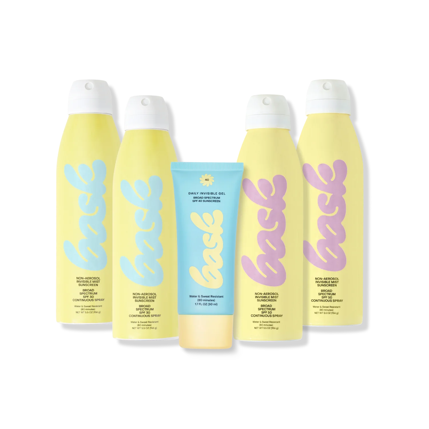 NEW - save 20% when you purchase Daily Invisible Gel SPF 40 for your face and Non-Aerosol Invisible Mist in SPF 30 and 50 for your body. These 5 together will keep you protected from head to toe, and on the go.